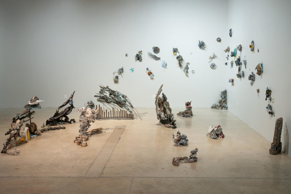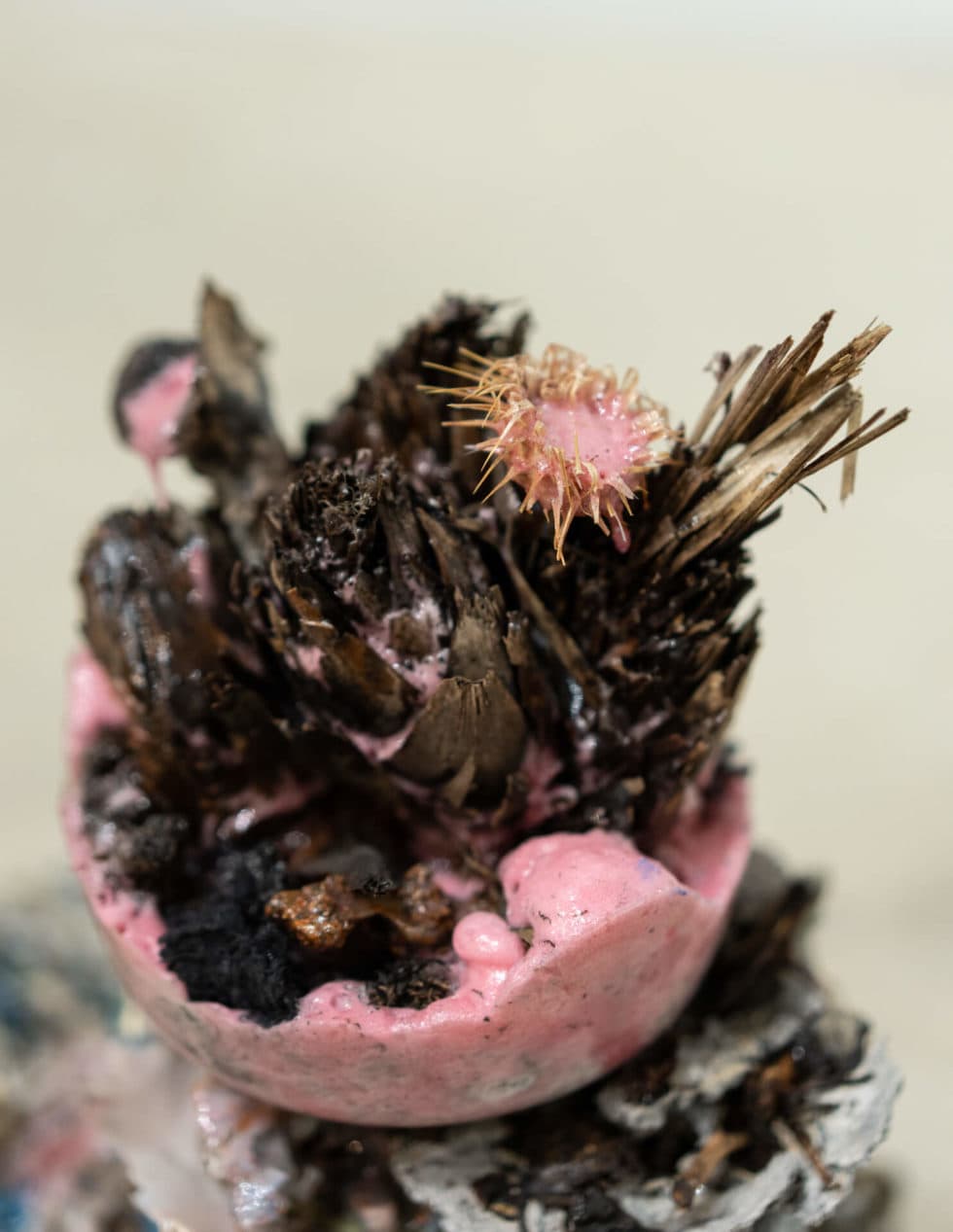 Ever, Always Are is a response to strong dissociative tendencies. When dysregulated, my grasp of reality becomes fragile and I don’t trust my thoughts or perceptions. Memories become slippery, mutable, and easily influenced. When in that state, working with materials brings clarity to an oppressive fog—if I can touch it, I know it is real. Adaptation has driven me towards object-making in all its forms, and I relate this survival strategy to natural phenomena.