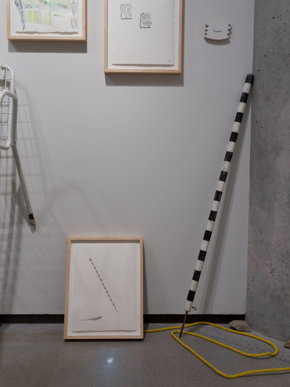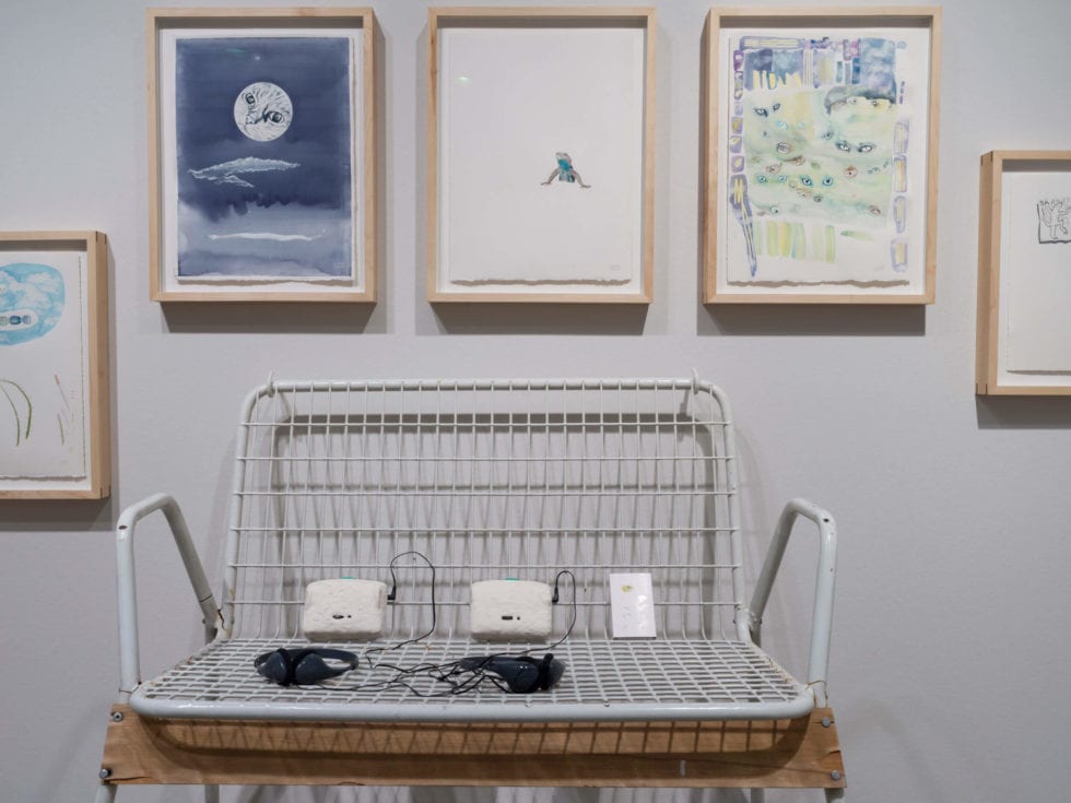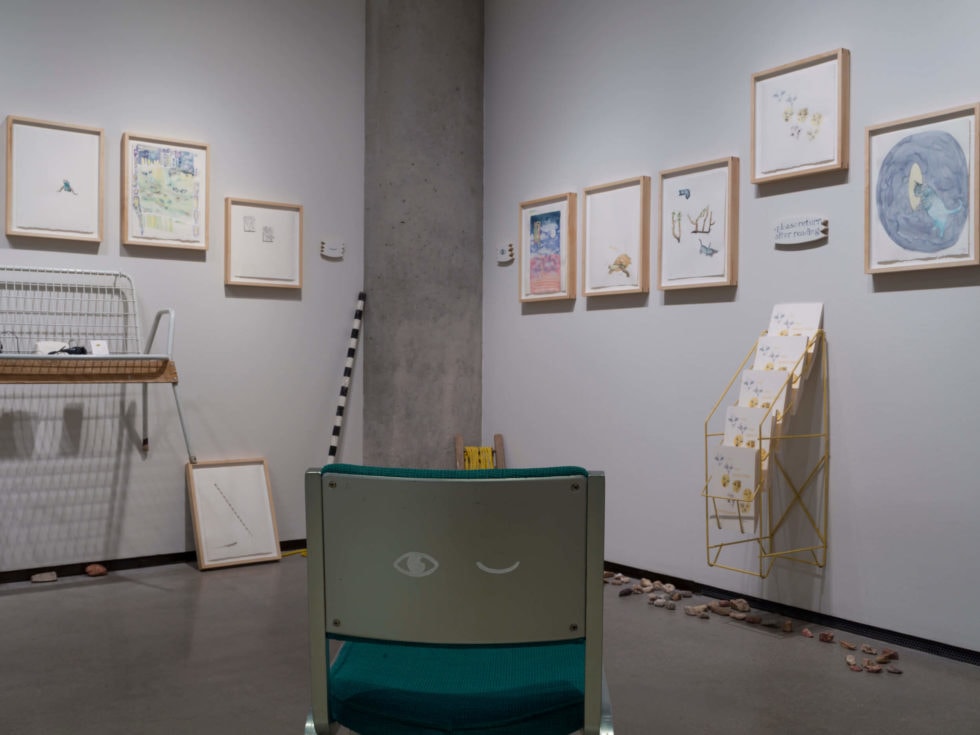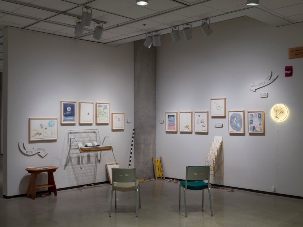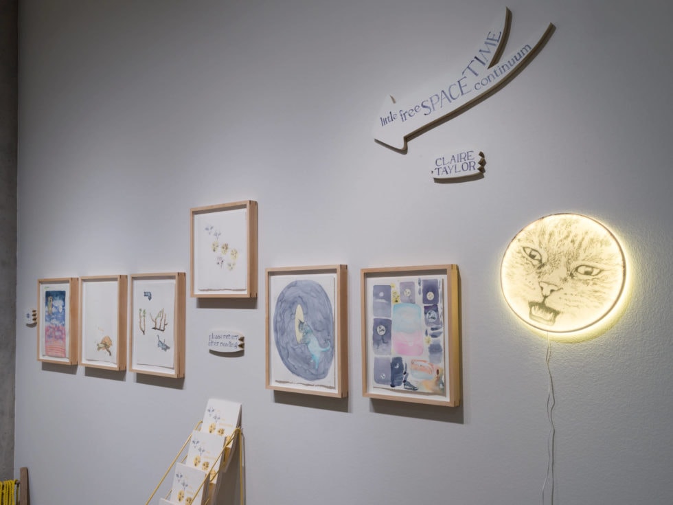 The installation Little Free Space Time Continuum includes a story book bearing the same title. Like the text of the story, the installation is designed to feel as though one is at a crossroads between our world and the fictional world of the book. Physical manifestations of aspects of the book are included in the installation to position the viewer within the text enabling them to encounter, touch and experience some the same things as the characters in the story.