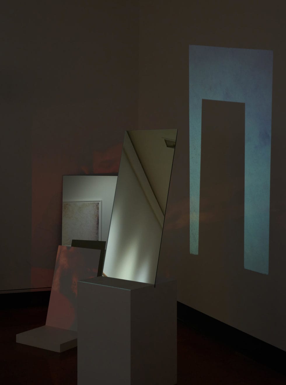 Through my work, I enter the archive, inserting myself into the projected images as I reexamine key moments from my past through reenacting desires in relation to the men depicted. The images reflect back a new entanglement of my queer desire and heteronormative self-expression with the those of the men from the archive. Histories of visibility and erasure converge and diverge as images become fractured and fragmented. Mirrors displace and complicate what’s internal and external while slide carousel boxes contain and obscure the images themselves. Sugar Play shifts the function and meaning of these appropriated personal archives that are reframed and recoded based on my relationship to them. My experiences and desires interpenetrate the archives, dissolving the lines between them and my own past. A more complicated and larger archive emerges, one that through desire bridges the gap between fantasy and reality.