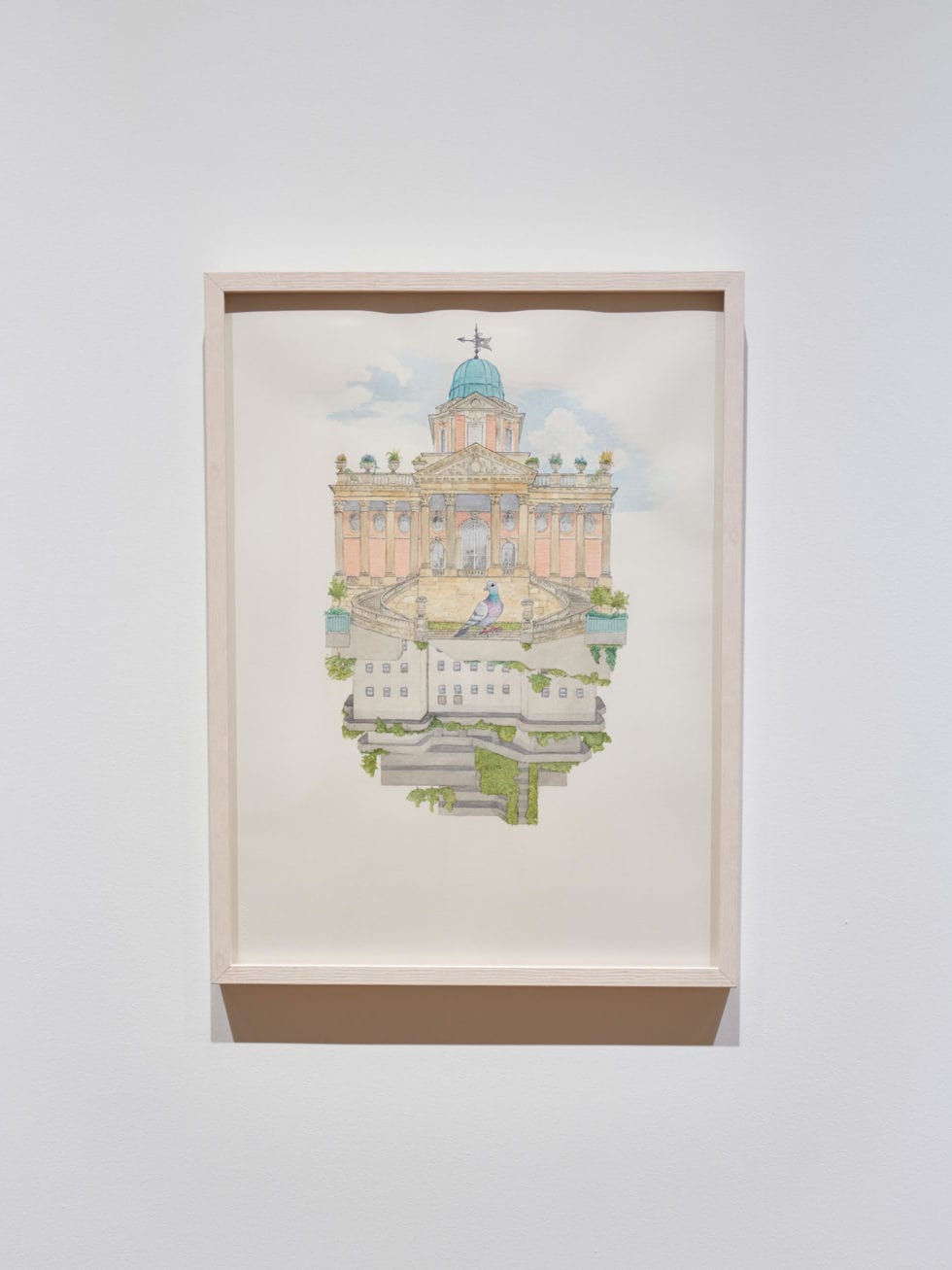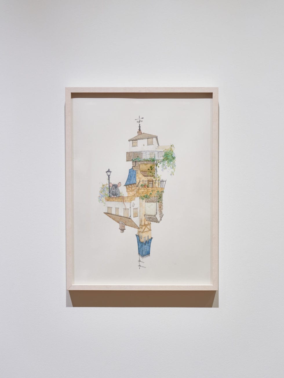 The nod to children’s book illustration invites the viewer to blur the boundaries between animal and human, reality and imagination.