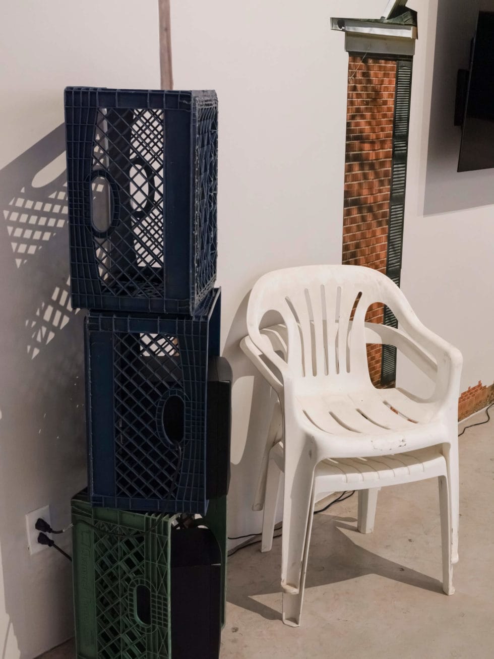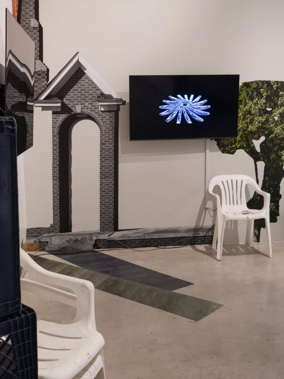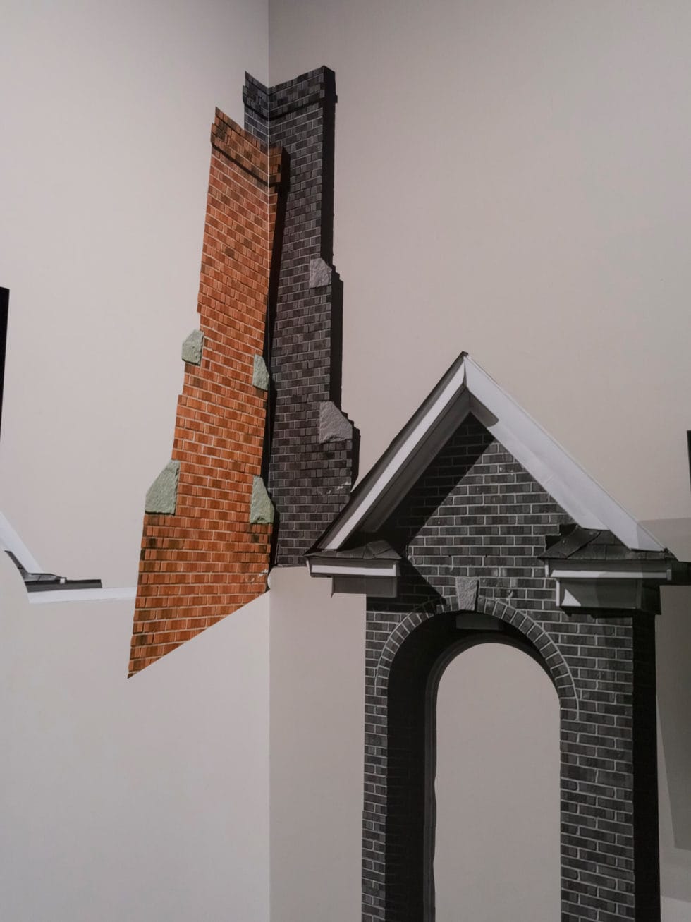 Throughout my childhood being directed to the corner meant assuming a position of punishment and embarrassment. Suggesting the corner of the gallery as a point of origin, the work radiates left and right alluding to both opening up and confinement. Largely deconstructed, an image of my childhood home is printed on adhesive vinyl and made to function as a stage for the performance of obedience and disobedience. By purposefully exposing the interiority of domestic space, I situate myself within the realities of dealing with our own mess through transparency, resistance and liberation.
