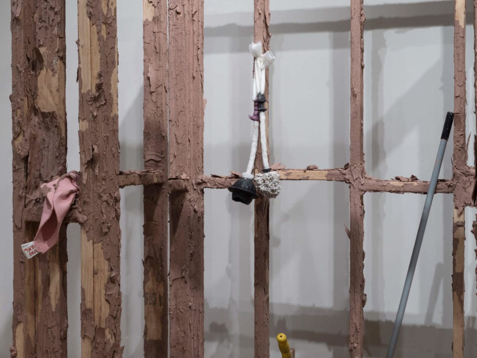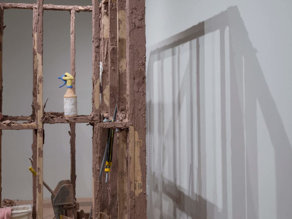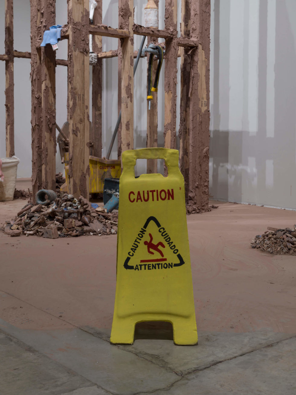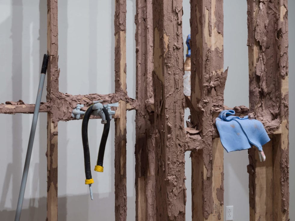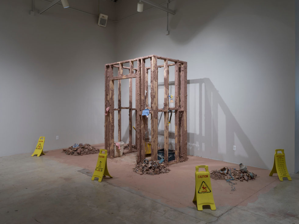 Oh Closet examines the relationship between my queerness and my custodial labor, both of which have placed me on the margins of society, in positions often unseen or overlooked. Consisting of performance and installation elements, Oh Closet subverts the idea of cleaning through using reclaimed scraps of ceramic works in the mop water, dirtying the water. Each time the mop makes contact with the floor, more recycled clay is distributed. The clean becomes unclean, as everything in the installation becomes covered in raw clay. The closet is composed of the framing of a wall that allows the viewer to peer into it to see actions typically unseen, making the viewer into a voyeur.